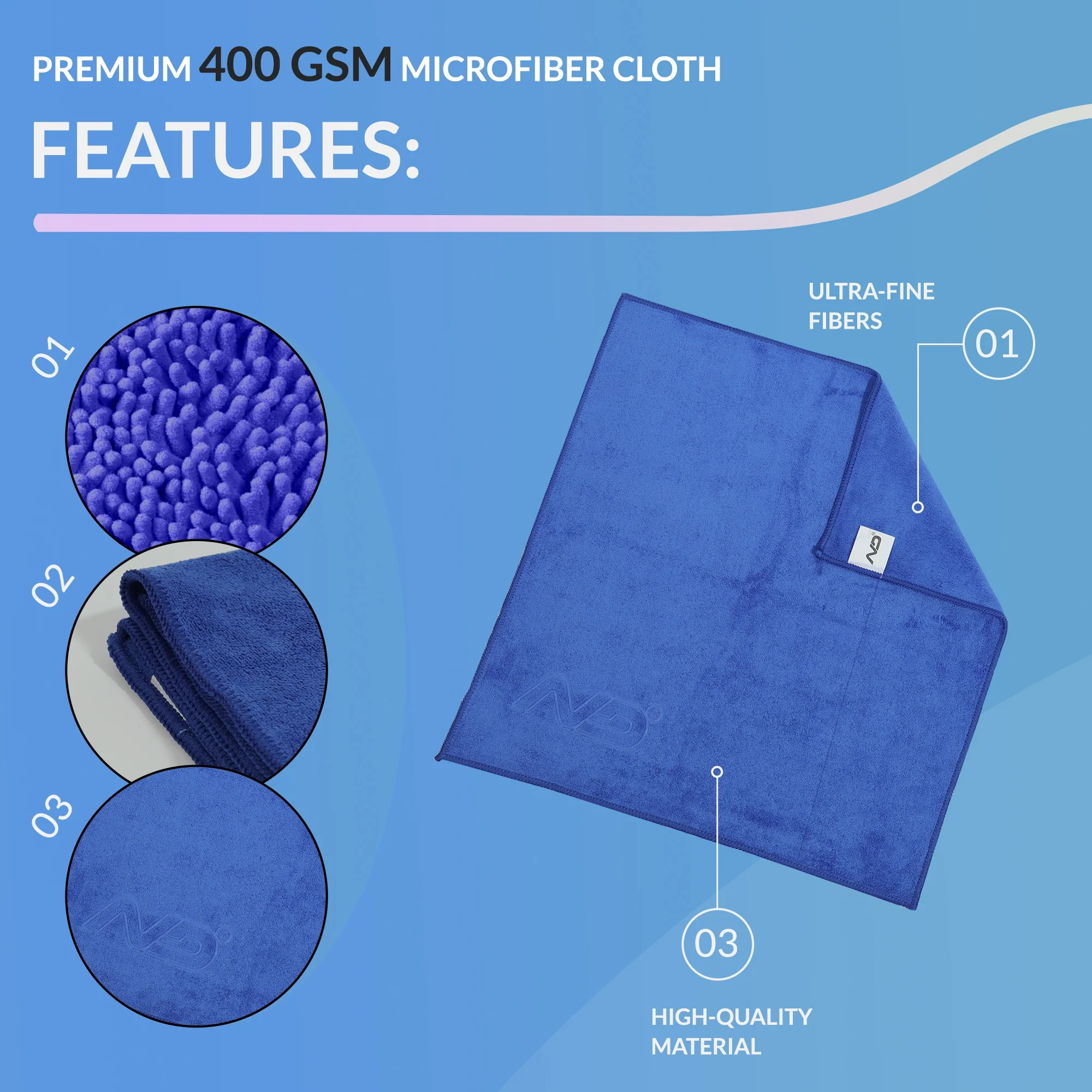 400 GSM (grams per square meter) indicates the density and thickness of the microfiber cloth. Higher GSM means the cloth is thicker, more absorbent, and durable.